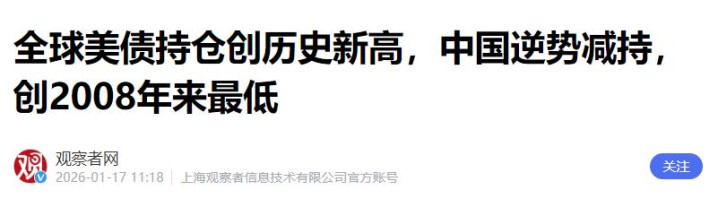 摆在明面上的数据已经说明了一切,当挪威、沙特等国还在为大额美债收益买单时,中国反手抛出的这61亿美元,将持仓量压至2008年金融危机以来的冰点。
