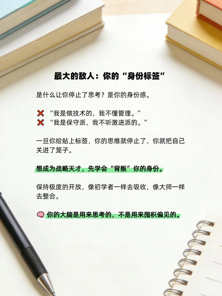 4️⃣ 打破身份标签:不要让“我是谁”限制了“我能成为谁”。