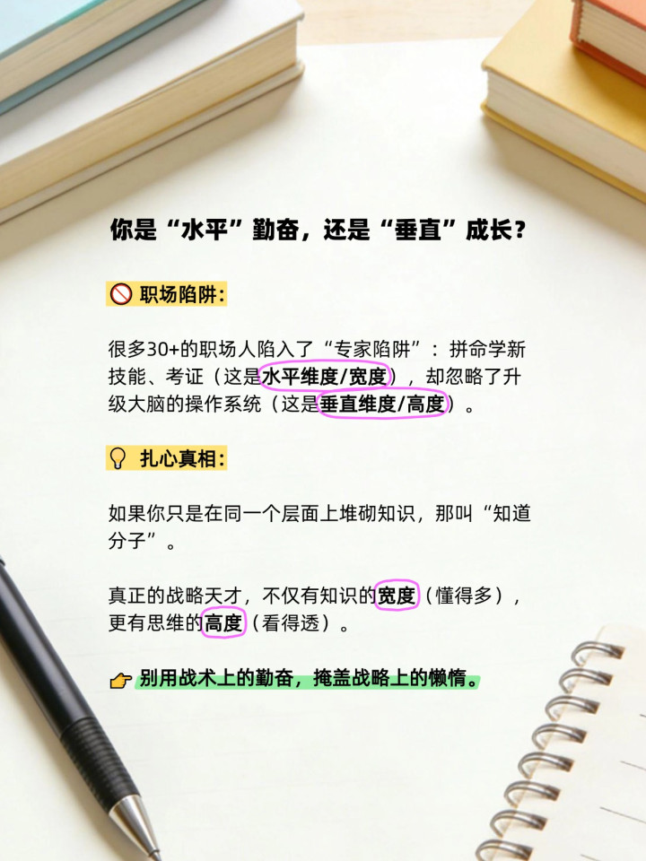 因为大部分人只在做“水平方向”的努力(学更多知识),却忽略了“垂直方向”的升级(提升认知高度)。