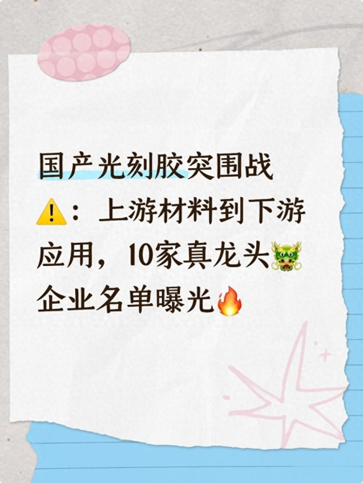 你觉得这10家企业里,哪家能最先在高端光刻胶领域实现大规模国产替代?国产光刻胶产业要想真正实现突围,还需要解决哪些问题?欢迎在评论区留下你的看法,我们一起交流探讨!