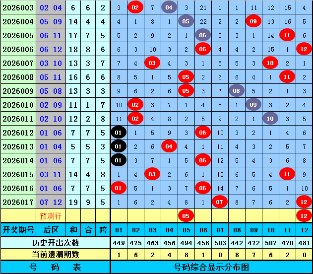 后区第二位推荐:在连续5期开奖中分别出号:04、06、11、06、12,均值为7.8,其中偶数奖号表现活跃,本期预计偶数号码继续热出,关注号码12。