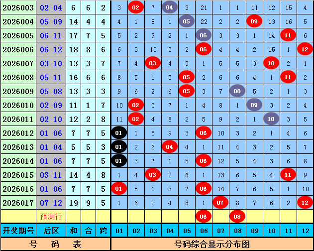 后区分析:在第018期历史同期开奖中,后区奖号全偶出现7次,一奇一偶出现6次,全奇出现6次,今年第018期看好后区出现全偶组合,关注两码06和08。