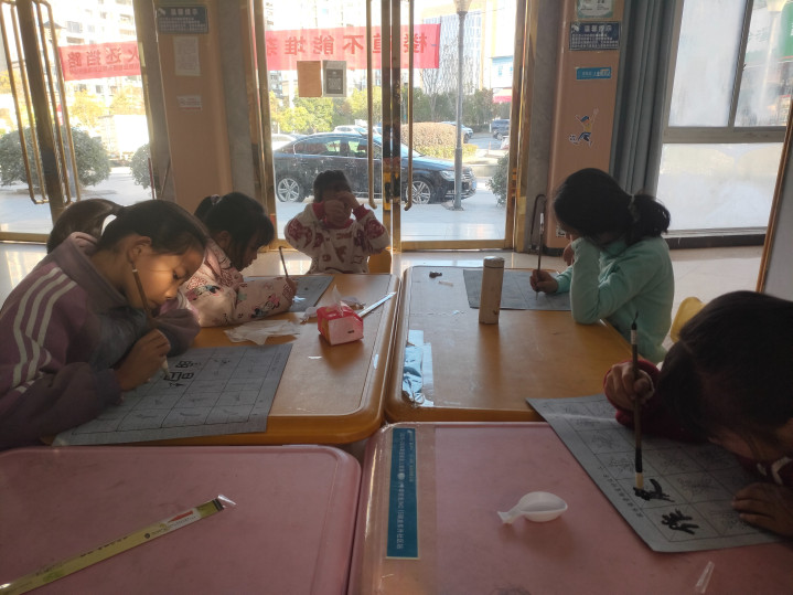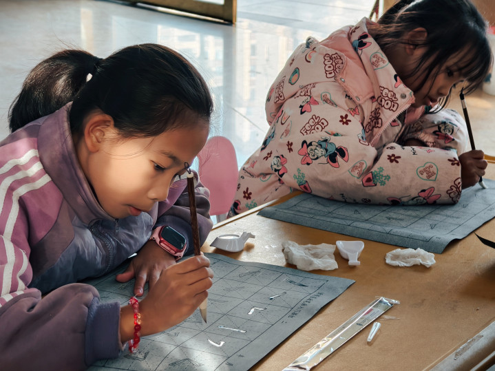 墨香浸润童心,笔尖流淌文化。志愿者一边讲解一边示范,强调“心静则字稳”的道理。孩子们第一次握起毛笔,虽然笔锋略显稚嫩,但那份专注和认真的态度令人动容。他们一笔一划地练习,在宣纸上反复书写。孩子们在横平竖直的练习中,体会书法艺术的严谨与法度,培养耐心与专注力。
